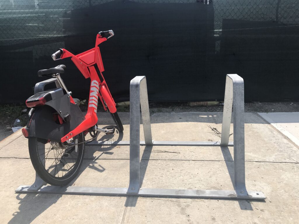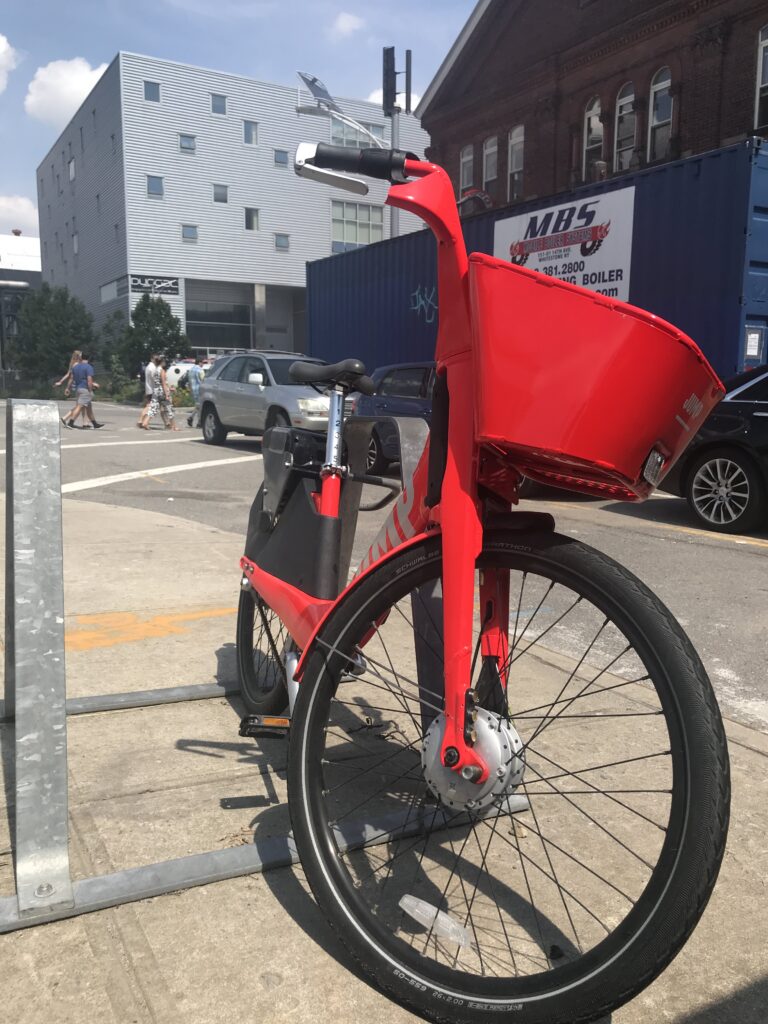 The terrain of the Navy Yard is really difficult to access. The historic harbor and shipyard area was right on my doorstep in Brooklyn and I would have liked to at least visit the Steiner film studios in the first week I was there. But I had no chance – not even to slip past the various posts at the entrances of the expansive grounds. After all, I was able to speak successfully with Oonee, who are testing their bicycle parking facilities on the site. But only after weeks, I found a way to participate in a guided tour by bus – definitely recommendable. And incidentally I found out there that the E-Bikesharing company „Jump“ has settled there. And similar to their mother „Citie Bike“ the rental system ist tested right there in the sheltered space. I had found Citie Bikes headquarters in the area of “Industry City“ in southern Brooklyn and walked there in the usual manner. Questions would only be answered written. An I did not really „jump on Jump“ and the first test outside the Navy Yards with the stationless e-bikes took place on Staten Island. At the end of my stay, so I could never really capture the story. Even a planned guest contribution ultimately did not work. Well …