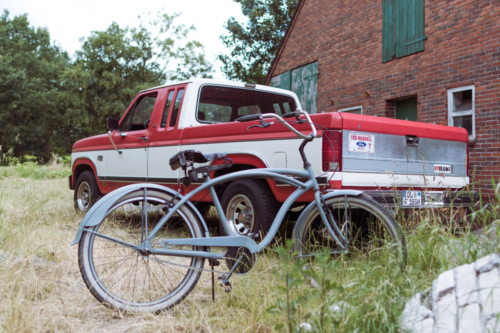 Und dabei sind wir sogar auch erneut aufs Rad gestiegen. Zum Beispiel anlässlich unseres Besuchs bei King Kasi alias Karsten Peters. Die „Kodderschnauze“ aus Wiesmoor ist eigentlich ein klassischer Petrolhead: verschiedene US-Oldis stehen vor Karstens Traumhaus, das er mit viel Mühe in einen bewohnbaren Zustand versetzt hat. Und wie sich zeigte, hat selbst der Mann mit Benzin im Blut ein Faible für Fahrräder. Die Geschichte rund um den ungewöhnlichen Heimkehrer aus Hamburg erzeugte im Kontext des Projektes viel Aufmerksamkeit. Vor allen Dingen bei Facebook wurde die Geschichte vielfach geteilt und kommentiert und hat Menschen aus Wiesmoor und Umgebung auf uns und die Möglichkeit teilzunehmen aufmerksam gemacht.